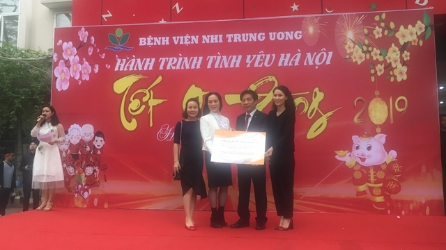Đại diện BV Nhi TW đón nhận quà tài trợ từ các nhà hảo tâm