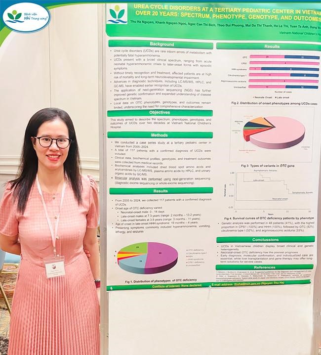 - BS Nguyễn Thu Hà – Trung tâm Nội tiết, Chuyển hóa, Di truyền và Liệu pháp phân tử – được trao Giải thưởng Báo cáo Poster – Hội nghị Quốc tế lần thứ 6 về Rối loạn chuyển hóa Chu trình Ure (2025) , một lĩnh vực có giá trị lâm sàng quan trọng.