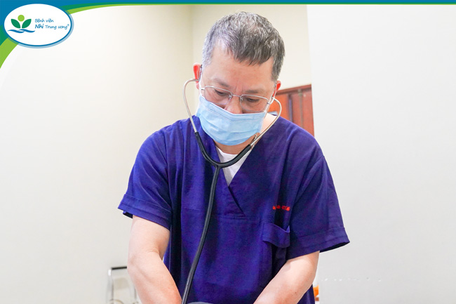 TS.BS Trần Đăng Xoay thăm khám cho bệnh nhi