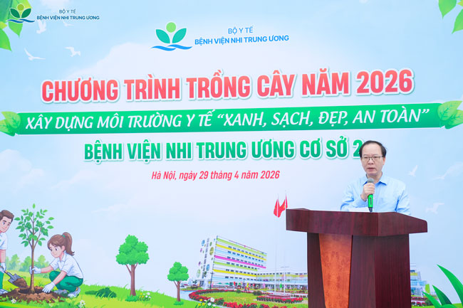 Sáng 29/4/2026, Bệnh viện Nhi Trung ương tổ chức chương trình trồng cây năm 2026 tại Cơ sở 2 (xã Kiều Phú – huyện Quốc Oai cũ) với thông điệp: “Xây dựng môi trường y tế xanh, sạch, đẹp, an toàn”. Hoạt động nhằm tăng diện tích cây xanh, tạo bóng mát, cải thiện chất lượng không khí, đồng thời góp phần nâng cao chất lượng điều trị và xây dựng hình ảnh bệnh viện thân thiện với môi trường.