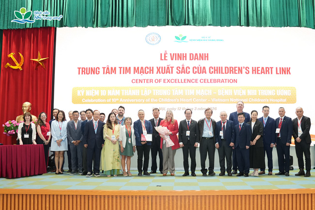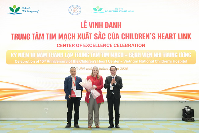 Nhân dịp kỷ niệm 10 năm thành lập Trung tâm Tim mạch, Bệnh viện Nhi Trung ương đã vinh dự được Children’s HeartLink – tổ chức phi lợi nhuận quốc tế trụ sở tại Hoa Kỳ, hoạt động nhằm cải thiện chất lượng chăm sóc cho trẻ em mắc bệnh tim bẩm sinh ở các khu vực thiếu dịch vụ chuyên sâu trên thế giới, trao tặng danh hiệu “Trung tâm Tim mạch xuất sắc”. Lễ vinh danh diễn ra trong khuôn khổ Hội nghị khoa học “Cập nhật kinh nghiệm chẩn đoán và điều trị tim bẩm sinh phức tạp”, do bệnh viện phối hợp với Hội Nhi khoa Việt Nam tổ chức trong hai ngày 12–13/3/2026.