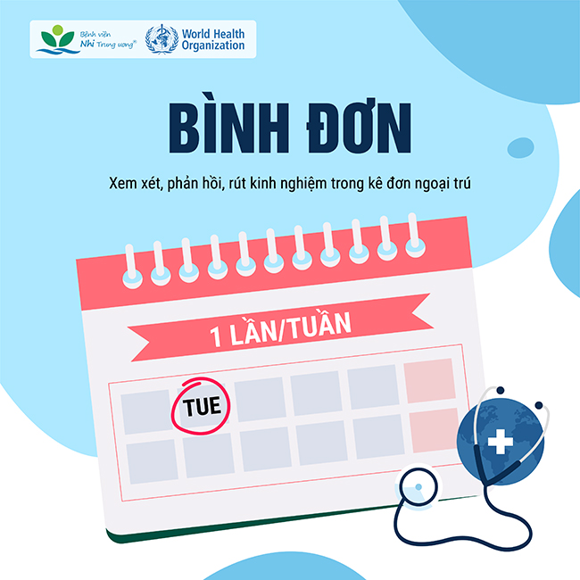 Bên cạnh việc tập trung quản lý kháng sinh cho bệnh nhân nội trú, Bệnh viện Nhi Trung ương còn triển khai quản lý kháng sinh kê đơn ngoại trú thông qua hoạt động bình đơn. Hoạt động này có sự tham gia của Ban Giám đốc bệnh viện, phối hợp chặt chẽ với các khoa lâm sàng, cận lâm sàng và các phòng/ban chức năng, nhằm đánh giá tính hợp lý và an toàn của các đơn thuốc ngoại trú.