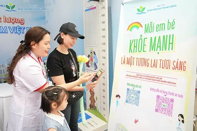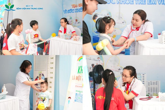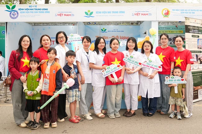 Ngay từ đầu giờ sáng, đã có đông đảo các em nhỏ cùng gia đình đến gian hàng của Bệnh viện Nhi Trung ương với mong muốn được thăm khám sức khỏe cùng các chuyên gia đầu ngành. Đội ngũ y bác sĩ đã trực tiếp thăm khám, tư vấn sức khỏe miễn phí cho hàng trăm trẻ em về các vấn đề thường gặp như: dinh dưỡng, tiêm chủng, các bệnh lý hô hấp, tai mũi họng, dị ứng. Phụ huynh cũng được hướng dẫn cụ thể về cách chăm sóc, phòng bệnh cho trẻ theo từng độ tuổi, giúp trẻ được chủ động bảo vệ sức khỏe ngay từ gia đình.