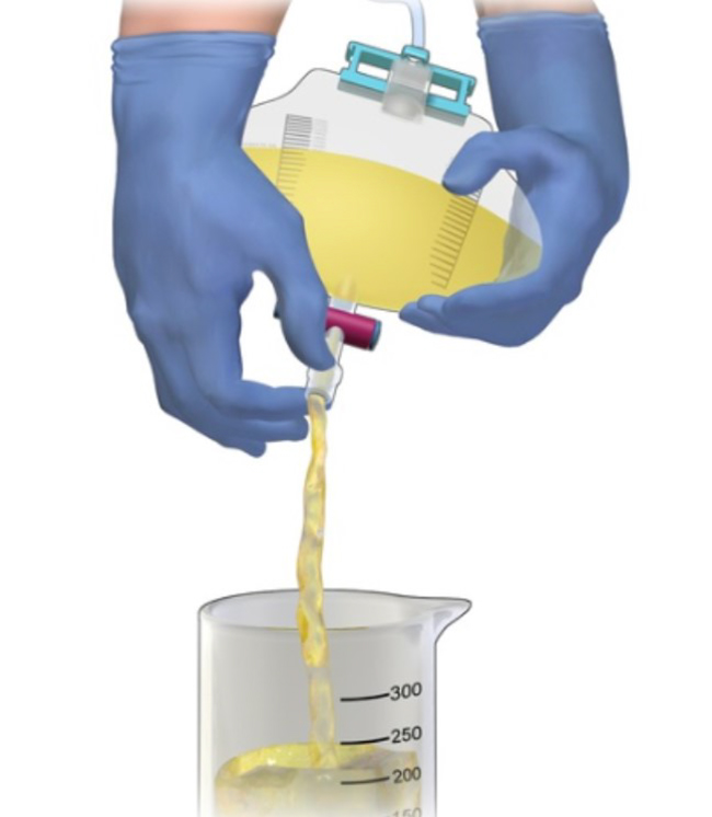 Loại bỏ nước tiểu ở túi dẫn lưu ít nhất 1 lần mỗi ca làm việc bằng dụng cụ riêng, sạch cho từng người bệnh (ảnh minh họa – nguồn internet)