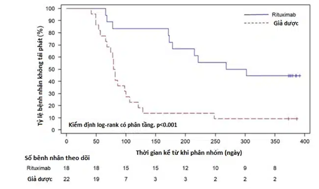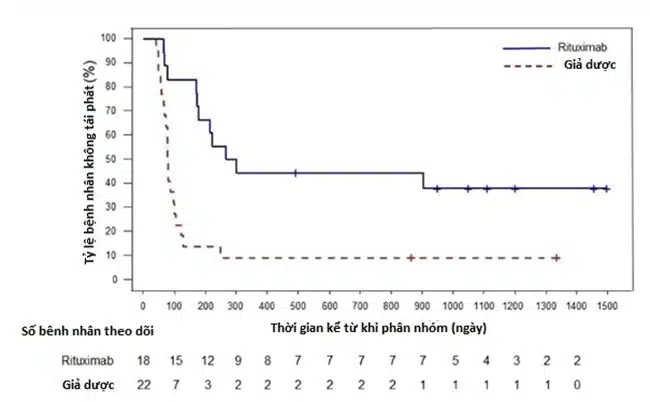 - Số bệnh nhân tái phát: Nhóm rituximab 10/18; nhóm giả dược 20/22.