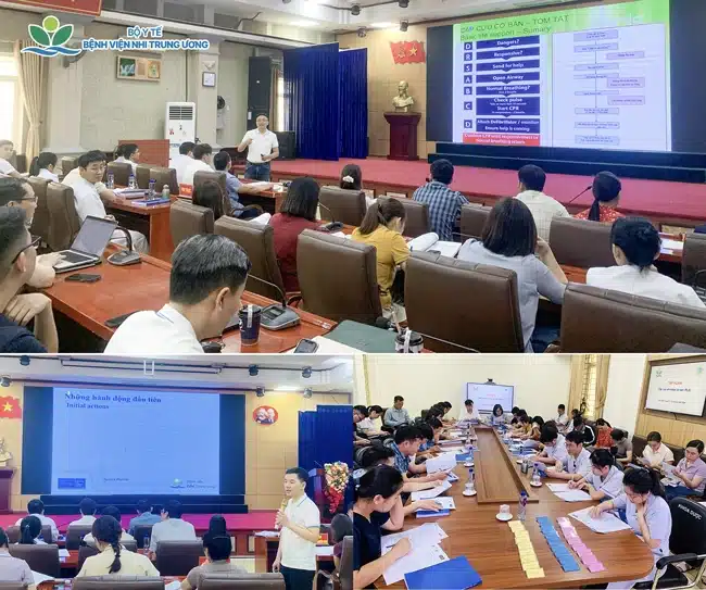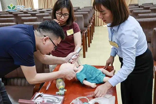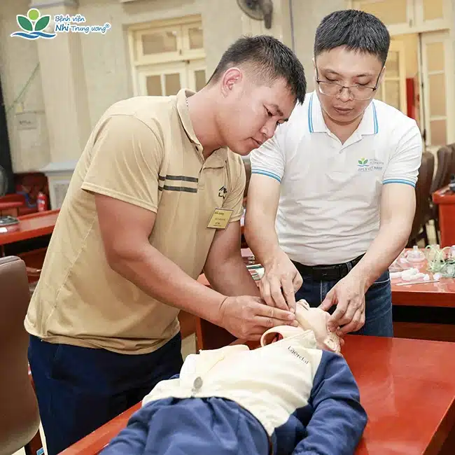 Khóa học với 28 học viên tham gia, do 6 chuyên gia từ Bệnh viện Nhi Trung ương trực tiếp giảng dạy. Chương trình tập trung trang bị những kỹ năng thiết yếu: nhận diện sớm, xử trí ban đầu và cấp cứu các tình huống thường gặp ở trẻ em. Các bài giảng lý thuyết kết hợp thực hành trên mô hình và thảo luận tình huống, tạo điều kiện cho học viên rèn luyện kỹ năng xử trí nhanh và phối hợp hiệu quả trong môi trường thực tế. Ngoài ra, học viên được kiểm tra đầu vào và đầu ra, cấp chứng nhận sau khóa học.