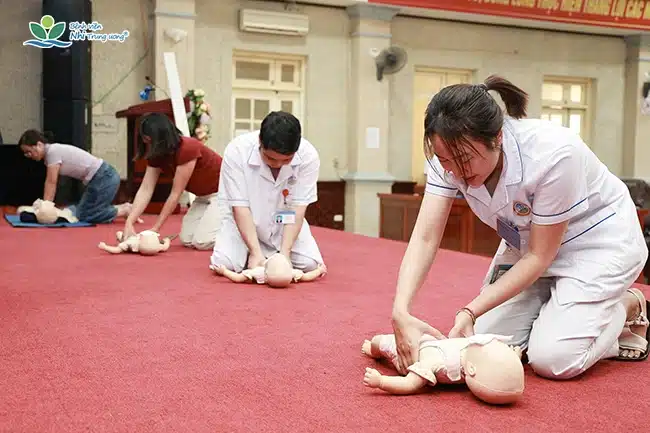Không khí lớp học diễn ra sôi nổi. Học viên tích cực thực hành các nội dung: xử trí trẻ sặc dị vật, cấp cứu ngừng tim, nhận biết trẻ bệnh nặng, tiếp cận chấn thương nặng, sốc phản vệ, xử trí giảm tri giác, co giật và vận chuyển người bệnh an toàn. Trong quá trình học, giảng viên và học viên thường xuyên trao đổi, thảo luận, giải đáp thắc mắc nhằm củng cố kiến thức và kinh nghiệm xử trí cấp cứu. Qua đó, học viên nâng cao năng lực xử trí tình huống một cách chủ động và an toàn.