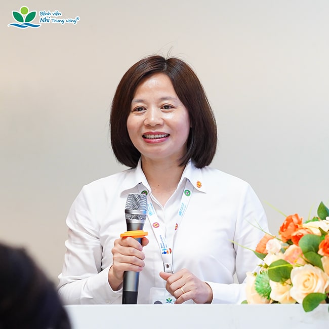 TS. Bùi Thị Thủy phát biểu khai mạc và gửi lời cảm ơn các chuyên gia quốc tế đã đồng hành, góp phần nâng cao chất lượng chăm sóc Nhi khoa.