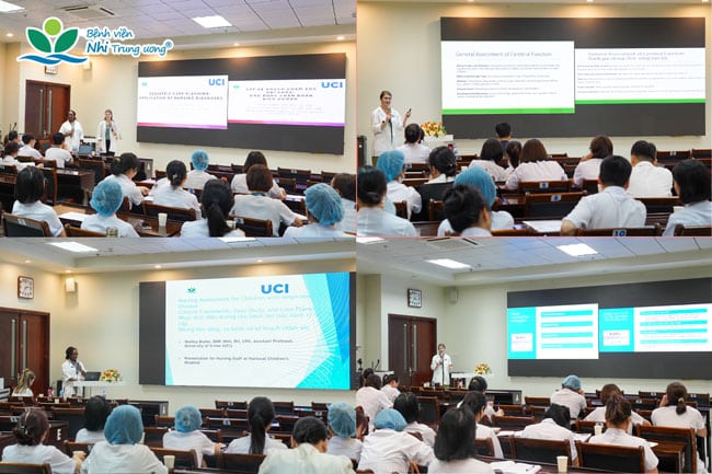 Trong 3 ngày đào tạo, các chuyên gia nhấn mạnh vai trò của điều dưỡng trong nhận diện sớm dấu hiệu nguy cơ và can thiệp kịp thời, góp phần bảo đảm an toàn cho trẻ. Chương trình tập trung vào các chủ đề: tăng cường hồi phục sau phẫu thuật (ERAS); bệnh lý hô hấp ở trẻ em; nhận diện dấu hiệu cảnh báo sớm (Pediatric Early Warning Signs – PEWS); chăm sóc giảm nhẹ và chăm sóc cuối đời nhằm kiểm soát triệu chứng, giảm đau thể chất và tâm lý, nâng cao chất lượng cuộc sống. Các ca lâm sàng minh họa cũng được lồng ghép, giúp học viên nâng cao khả năng áp dụng thực tế.