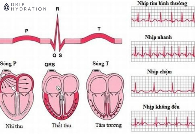 + Sóng P: biểu thị sự khử cực tâm nhĩ.