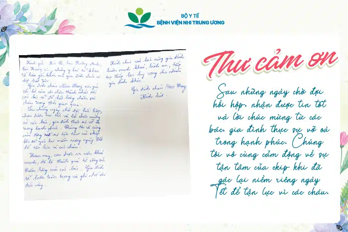 Hôm nay, con được ra viện khỏe mạnh, đó là thành quả từ công sức thầm lặng của các bác. Gia đình sẽ luôn trân trọng và ghi nhớ ơn đức này.