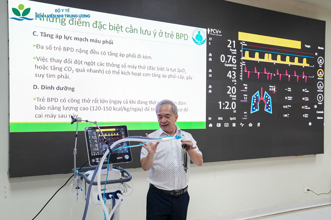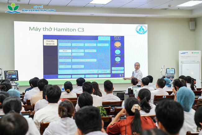 “Thở máy ở trẻ em không phải là chủ đề mới, song công nghệ và các tính năng của máy thở liên tục được cải tiến, ngay cả bác sĩ giàu kinh nghiệm cũng cần thường xuyên cập nhật để ứng dụng hiệu quả trong thực hành lâm sàng. Tại Bệnh viện Nhi Trung ương, vào thời gian cao điểm, số lượng bệnh nhi thở máy có thể lên tới 100 – 120 ca mỗi ngày. Do đó, việc đào tạo và cập nhật kiến thức chuyên sâu về sử dụng máy thở là yêu cầu cấp thiết giúp các bác sĩ làm chủ thiết bị, nâng cao chất lượng điều trị và đảm bảo an toàn người bệnh”.
