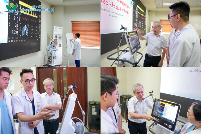Học viên trực tiếp phân tích ca bệnh, thao tác và hoàn thiện kỹ năng sử dụng máy thở dưới sự hướng dẫn của giảng viên