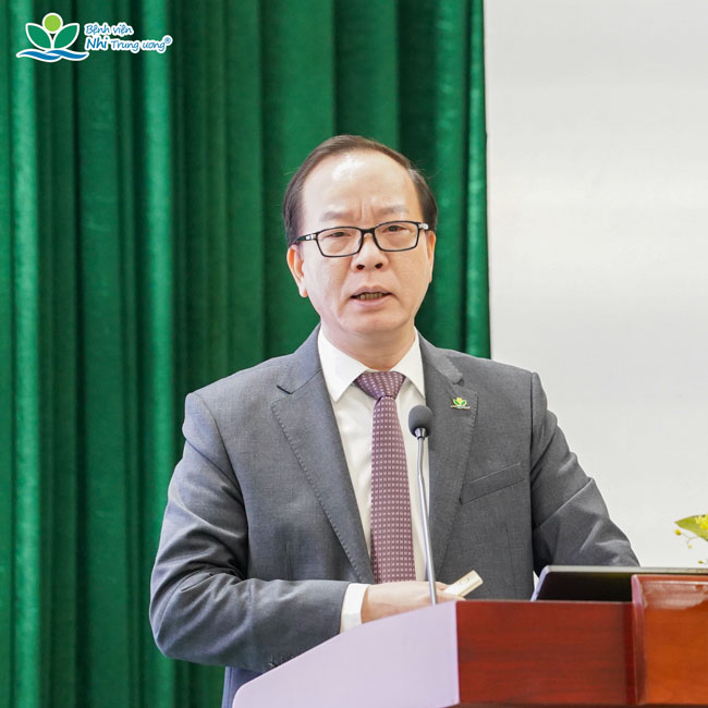 GS.TS Trần Minh Điển nhấn mạnh những thành quả của Bệnh viện đạt được hôm nay là sự tiếp nối từ nền tảng vững chắc mà các thế hệ cán bộ qua các thời kỳ đã dày công vun đắp; đồng thời mong muốn tiếp tục nhận được sự quan tâm, chia sẻ, đồng hành và những ý kiến quý báu của các cán bộ hưu trí trên chặng đường phát triển của Bệnh viện