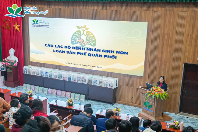 Ngày 24/01/2026, Bệnh viện Nhi Trung ương đã tổ chức Câu lạc bộ bệnh nhân sinh non loạn sản phế quản phổi – một bệnh lý hô hấp mạn tính thường gặp ở trẻ sinh non, đặc biệt là trẻ có tuổi thai thấp và phải hỗ trợ hô hấp kéo dài sau sinh. Chương trình nhằm chia sẻ kiến thức y khoa, hướng dẫn chăm sóc trẻ tại nhà, đồng thời tiếp thêm niềm tin, nghị lực cho các gia đình đang đồng hành cùng con trên hành trình điều trị lâu dài.