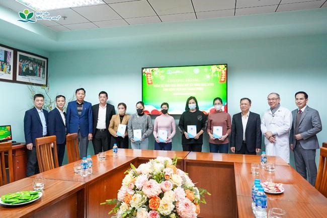 Đại diện 05 gia đình bệnh nhi đang điều trị tại Trung tâm Nội tiết – Chuyển hóa – Di truyền và Liệu pháp phân tử nhận quà tại buổi đón tiếp