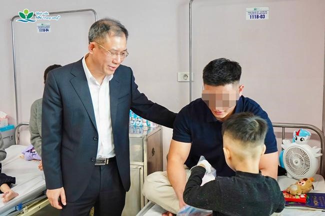 GS.TS Trần Minh Điển – Giám đốc Bệnh viện Nhi Trung ương gửi lời cảm ơn sâu sắc đến đoàn công tác và giới thiệu khái quát về tình hình hoạt động của Bệnh viện, đồng thời gửi lời động viên gần gũi, ấm áp đến các em nhỏ và gia đình, chúc các bé mau khỏi bệnh để được về nhà đón tết đầm ấm và hạnh phúc.
