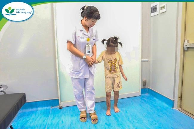 Bé N.L được kiểm tra mức độ hồi phục tại khoa Phục hồi chức năng