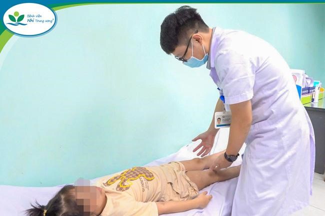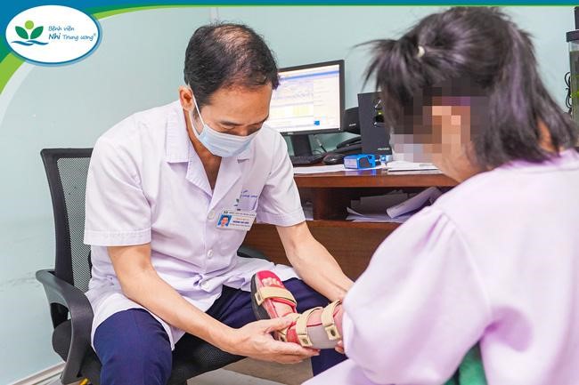 TS.BS Hoàng Hải Đức – Trưởng khoa Chỉnh hình, Bệnh viện Nhi Trung ương thăm khám cho bệnh nhi