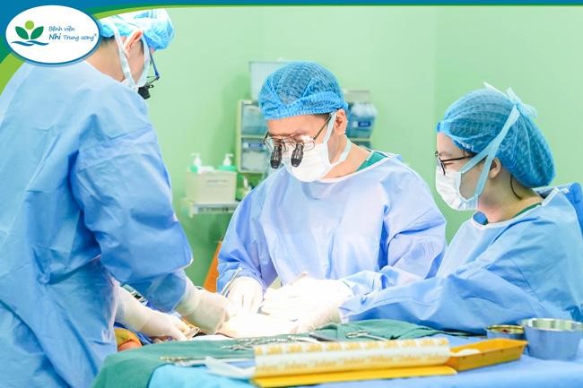 TS.BS Hoàng Hải Đức cùng ekip thực hiện phẫu thuật cho bệnh nhi
