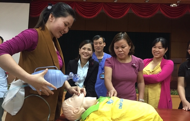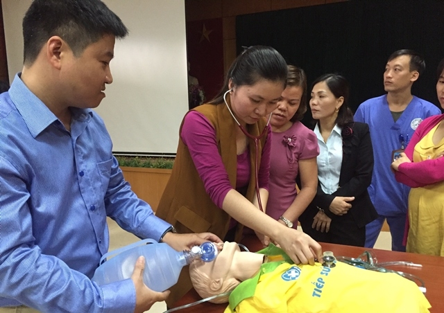 Các học viên được tập huấn các thao tác xử trí cấp cứu