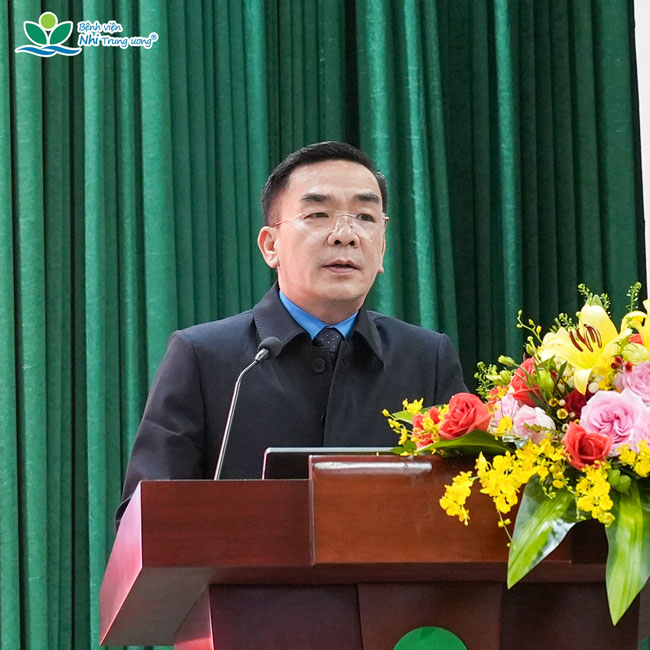 Phát biểu tại Hội nghị, TS.BS Nguyễn Lương Tâm – Chủ tịch Công đoàn Y tế Việt Nam biểu dương và đánh giá cao những kết quả toàn diện mà Bệnh viện Nhi Trung ương đã đạt được trong bối cảnh ngành Y tế còn nhiều khó khăn, thách thức. Với vai trò bệnh viện chuyên khoa Nhi đầu ngành tuyến cuối, Bệnh viện tiếp tục khẳng định vị thế thông qua việc triển khai kỹ thuật cao, nâng cao chất lượng dịch vụ và xây dựng đội ngũ cán bộ y tế tận tâm, chuyên nghiệp. TS.BS Nguyễn Lương Tâm cũng ghi nhận vai trò tích cực của Công đoàn Bệnh viện trong công tác chăm lo, bảo vệ quyền lợi người lao động, phát huy dân chủ cơ sở và tổ chức hiệu quả các phong trào thi đua, hoạt động an sinh, xã hội.