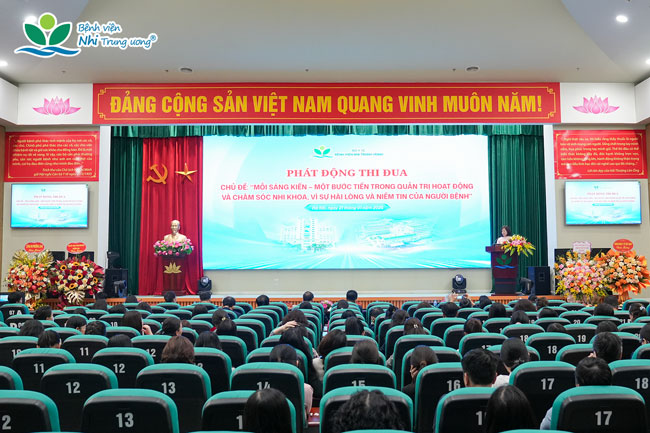 Bế mạc chương trình, TS. Bùi Thị Thủy – Chủ tịch Công đoàn Bệnh viện Nhi Trung ương thay mặt hơn 2.200 cán bộ, viên chức, người lao động của Bệnh viện đã phát động phong trào thi đua năm 2026 với chủ đề “Mỗi sáng kiến – Một bước tiến trong quản trị hoạt động và chăm sóc Nhi khoa, vì sự hài lòng và niềm tin của người bệnh”