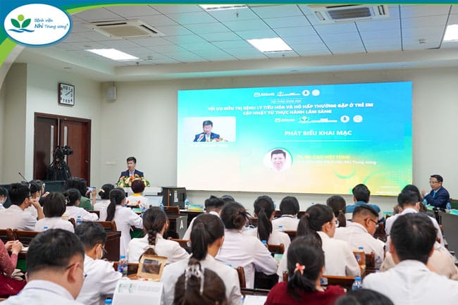 Hội thảo là cơ hội để đội ngũ bác sĩ, dược sĩ và điều dưỡng cập nhật kiến thức, chia sẻ kinh nghiệm và nâng cao năng lực chuyên môn trong điều trị bệnh lý tiêu hóa – hô hấp ở trẻ em.