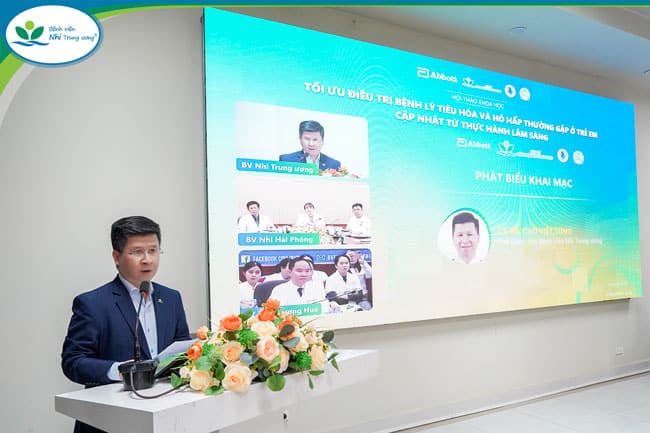 Chiều 26/11/2025, Bệnh viện Nhi Trung ương phối hợp cùng Bệnh viện Nhi Hải Phòng, Bệnh viện Trung ương Huế và Abbott Việt Nam tổ chức hội thảo khoa học với chủ đề “Tối ưu điều trị bệnh lý tiêu hoá và hô hấp thường gặp ở trẻ em: Cập nhật từ thực hành lâm sàng”. Chương trình nhằm cung cấp những kiến thức mới về chẩn đoán và điều trị tiêu chảy cấp, viêm họng và viêm amidan cấp tái phát – các bệnh lý phổ biến ở trẻ em hiện nay.