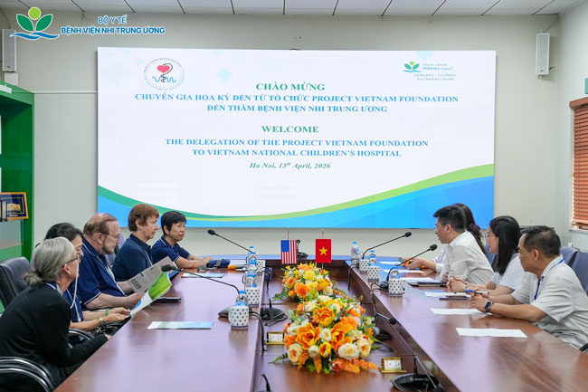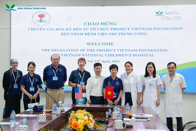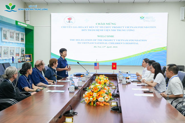 Trong hai ngày 13–14/4/2026, Bệnh viện Nhi Trung ương đã tiếp đón và làm việc với đoàn chuyên gia Tổ chức Project Vietnam Foundation (PVF) Hoa Kỳ, nhằm trao đổi định hướng hợp tác trong các lĩnh vực Sức khỏe tâm thần và Chăm sóc sơ sinh. Buổi làm việc có sự tham gia của lãnh đạo và các chuyên gia của hai đơn vị.