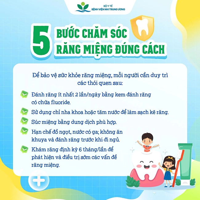 - Đánh răng 2 lần/ngày với kem chứa fluoride