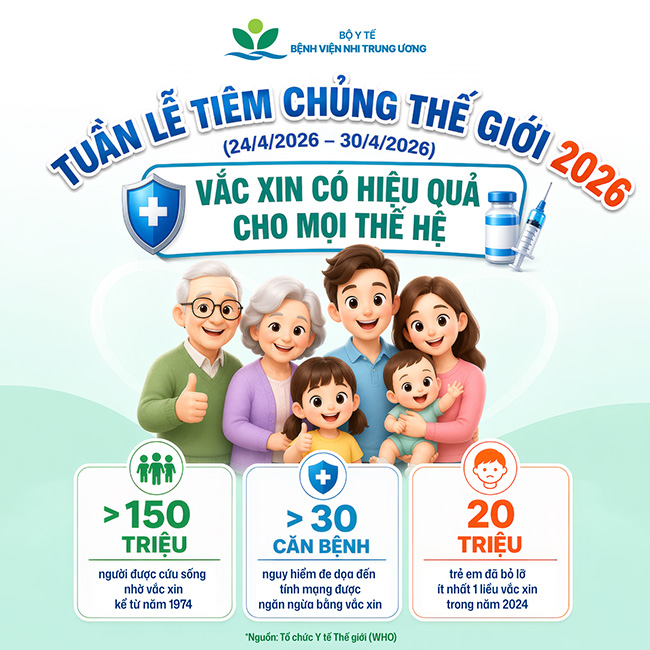 Hưởng ứng Tuần lễ Tiêm chủng Thế giới 2026 với chủ đề “Vắc xin hiệu quả cho mọi thế hệ”, thông điệp được nhấn mạnh: vắc xin đã bảo vệ con người qua nhiều thế hệ và sẽ tiếp tục là lá chắn bền vững cho chúng ta trong tương lai.