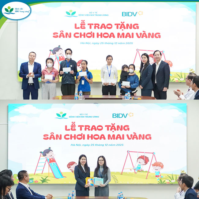 Trong không gian bệnh viện, những phút giây được vui chơi, cười đùa luôn mang ý nghĩa đặc biệt. Đó không chỉ là khoảng thời gian giải tỏa căng thẳng, mà còn tiếp thêm động lực tinh thần, giúp các em vững vàng hơn trên hành trình điều trị. Thấu hiểu giá trị ấy, Ngân hàng TMCP Đầu tư và Phát triển Việt Nam (BIDV) đã tài trợ xây dựng Sân chơi Hoa Mai Vàng và chính thức khánh thành, bàn giao cho Bệnh viện Nhi Trung ương vào sáng ngày 25/12/2025.