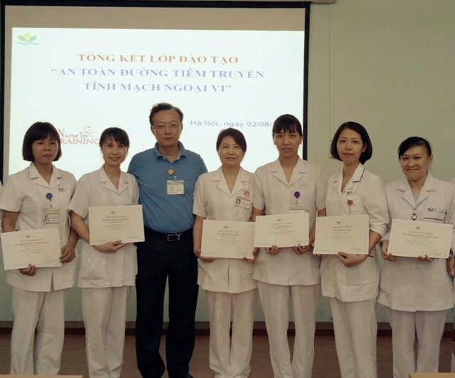 Trong tháng 7 và tháng 8 năm 2018, phòng Điều dưỡng đã phối hợp cùng Viện nghiên cứu sức khỏe trẻ em trực thuộc Bệnh viện Nhi TW và công ty BBRAUN tổ chức thành công 2 khóa học “An toàn tiêm truyền đường tĩnh mạch ngoại vi”. Khóa học nhằm mục đích cập nhật và nâng cao kiến thức, kỹ năng và thái độ trong thực hành tiêm truyền tĩnh mạch ngoại vi cho điều dưỡng tại các khoa lâm sàng.