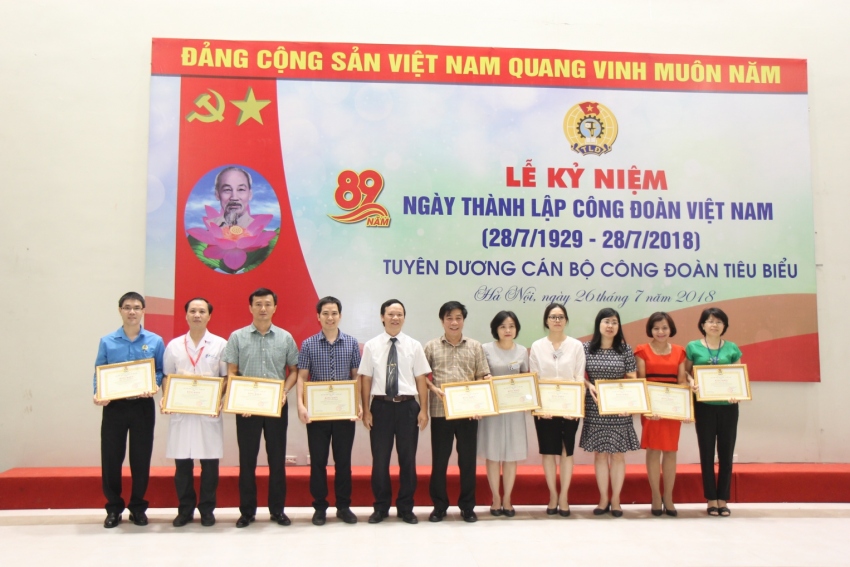 Tại buổi lễ mít tinh Đại diện lãnh đạo Công đoàn Y tế Việt Nam đã trao tặng bằng khen cho 07 tập thể và 40 cá nhân có thành tích xuất sắc trong phong trào thi đua lao động giỏi và xây đựng tổ chức công đoàn vững mạnh năm 2017 – 2018
