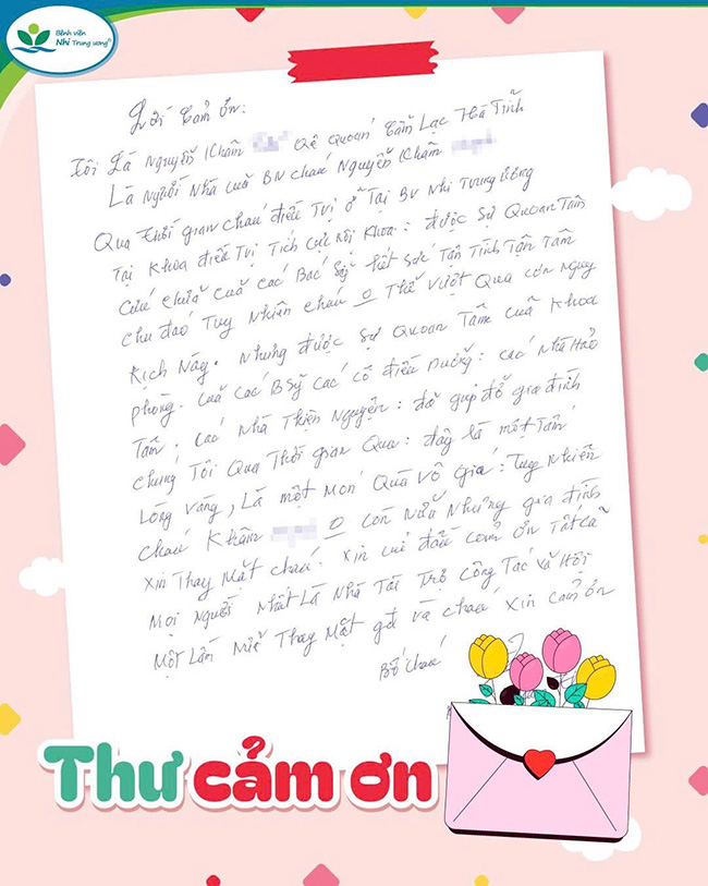 Dưới đây là trích đoạn thư cảm ơn của gia đình bệnh nhi: