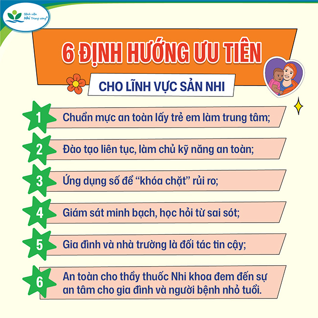 Trên tinh thần đó, Thứ trưởng Bộ Y tế đưa ra 6 định hướng ưu tiên cho lĩnh vực Sản – Nhi, bao gồm: