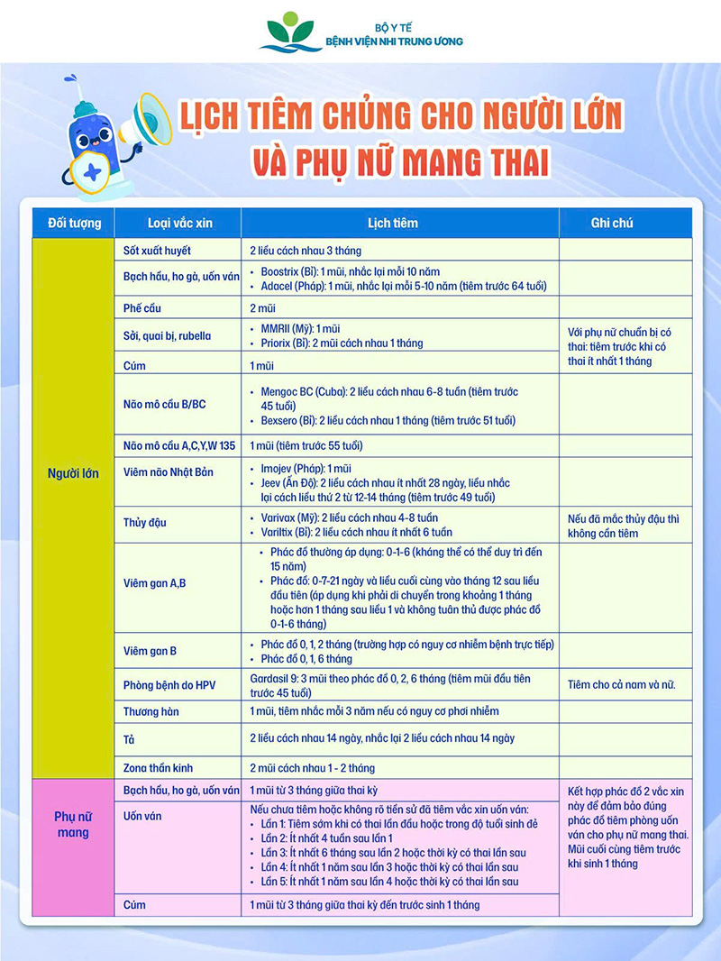 Trang chủ » Thông báo » Lịch tiêm chủng cho trẻ em, người lớn và phụ nữ mang thai