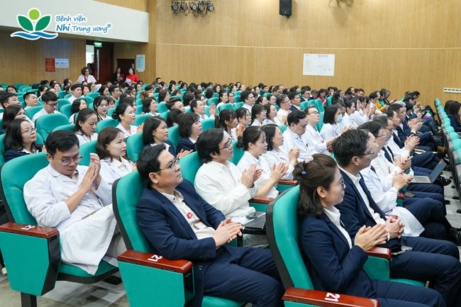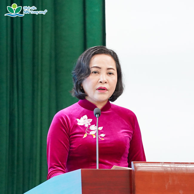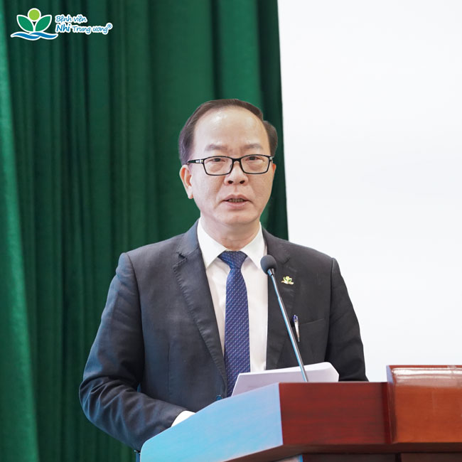 TTND.GS.TS Trần Minh Điển nhấn mạnh: với vai trò là bệnh viện chuyên khoa Nhi đầu ngành, tuyến cuối của cả nước, Bệnh viện không chỉ thực hiện nhiệm vụ khám, chữa bệnh mà còn gánh vác trách nhiệm chính trị – xã hội quan trọng trong công tác chăm sóc, bảo vệ sức khỏe trẻ em Việt Nam. Bệnh viện cam kết sẽ giữ vững truyền thống đoàn kết, kỷ cương, trách nhiệm; không ngừng nâng cao chất lượng chuyên môn, làm chủ và phát triển các kỹ thuật cao, đẩy mạnh nghiên cứu khoa học, hợp tác quốc tế, chỉ đạo tuyến và chuyển đổi số, lấy người bệnh và gia đình người bệnh làm trung tâm phục vụ.