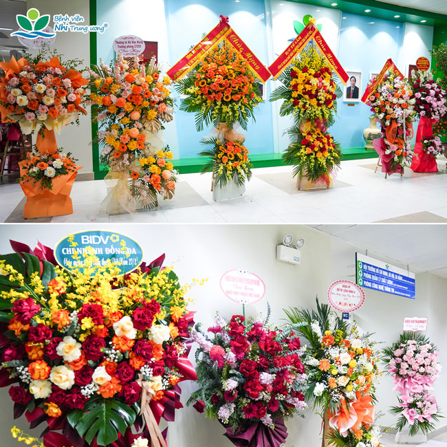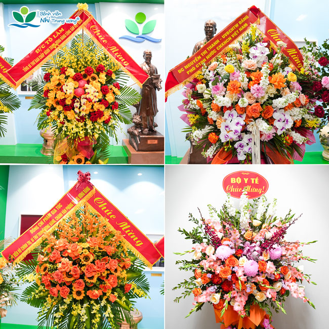 Bệnh viện vinh dự được nhận những lẵng hoa tươi thắm từ lãnh đạo Đảng, Nhà nước, Quốc hội, Bộ Y tế và các đơn vị chúc mừng