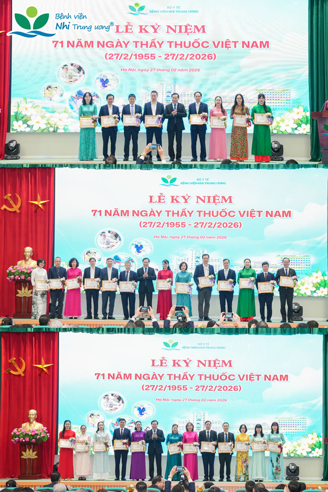 - 4 tập thể và 7 cá nhân của Bệnh viện Nhi Trung ương có nhiều thành tích xuất sắc trong công tác, góp phần vào sự nghiệp xây dựng chủ nghĩa xã hội và bảo vệ Tổ quốc đã vinh dự được trao tặng bằng khen của Thủ tướng Chính phủ;