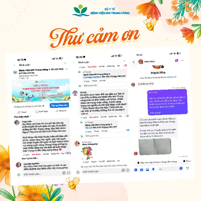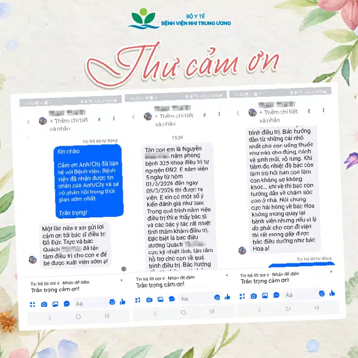 Bệnh viện Nhi Trung ương trân trọng cảm ơn những tình cảm chân thành từ các gia đình đã tin tưởng và đồng hành cùng chúng tôi.