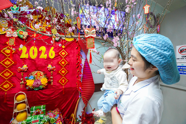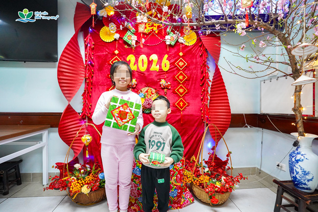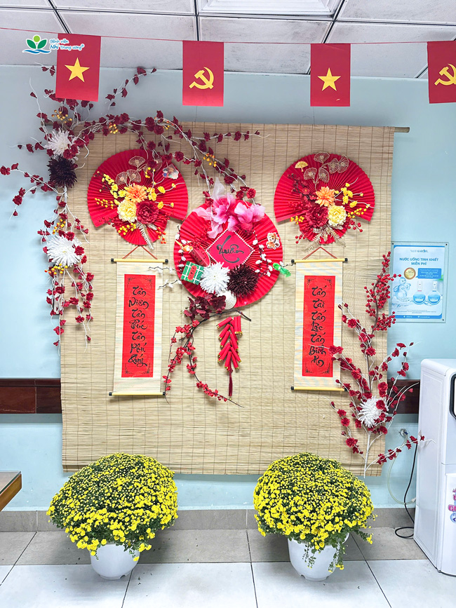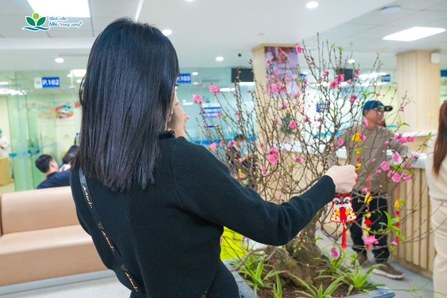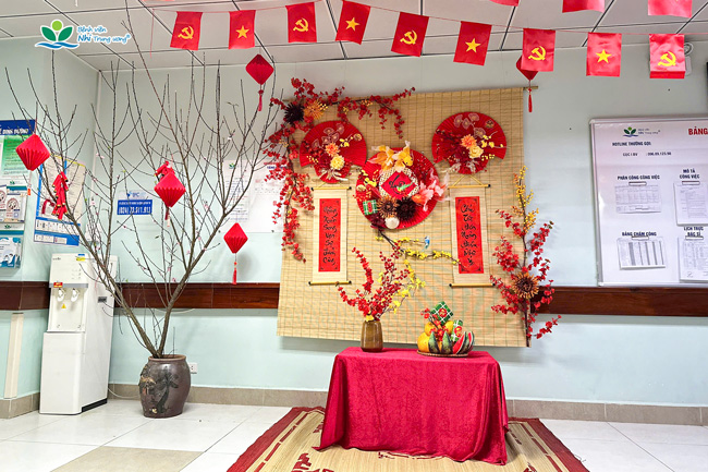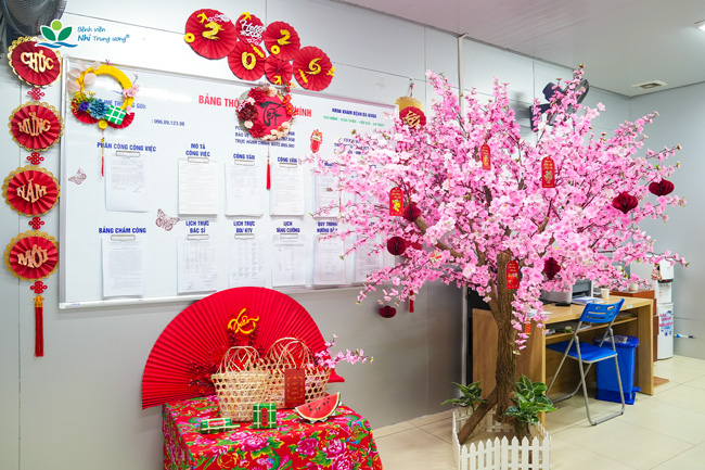 Ở nơi tưởng chừng chỉ có tiếng máy móc điều trị và mùi thuốc quen thuộc, Tết lại đến thật nhẹ nhàng qua những cành đào thắm xinh tươi nơi quầy tiếp đón, ánh đèn lồng đỏ lung linh dọc hành lang, và nụ cười ngây thơ của các em nhỏ.