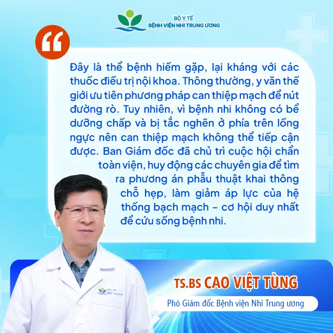 Mọi nỗ lực điều trị nội khoa và truyền Albumin hỗ trợ hàng ngày chỉ giúp giải quyết “phần ngọn”, trong khi “nút thắt” nằm sâu trong hệ bạch huyết vẫn là nguyên nhân chính, đe doạ đến tính mạng của trẻ.