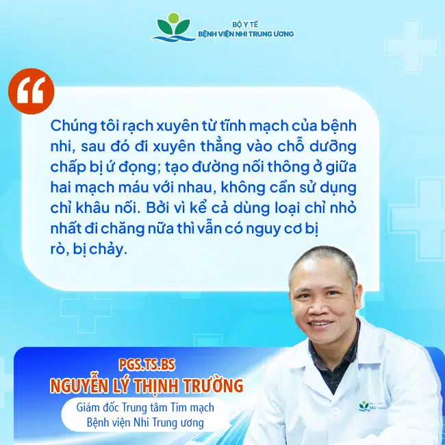 Từ thực tế đó, ekip phẫu thuật đã đưa ra quyết định rất sáng tạo, chưa từng thực hiện trước đó: Thiết lập miệng nối giữa hệ bạch huyết và tĩnh mạch mà không sử dụng chỉ khâu. Thay vì khâu trực tiếp vào thành mạch, các bác sĩ đã cô lập hoàn toàn chạc ba của tĩnh mạch chủ trên – tĩnh mạch vô danh, đồng thời rạch xuyên từ lòng tĩnh mạch đi trực tiếp vào chỗ dưỡng chấp bị ứ đọng, tạo ra một khoang dẫn chung không có chỉ khâu để dịch dưỡng chấp có thể tự chảy vào hệ tĩnh mạch theo chênh lệch áp lực sinh lý. Kỹ thuật này (vốn được sử dụng trong phẫu thuật tim bẩm sinh) đã giúp giảm thiểu tối đa tổn thương thành mạch, đồng thời đảm bảo khơi thông hoàn toàn đường dẫn hiệu quả và bền vững, gần như loại trừ khả năng tắc nghẽn tại miệng nối