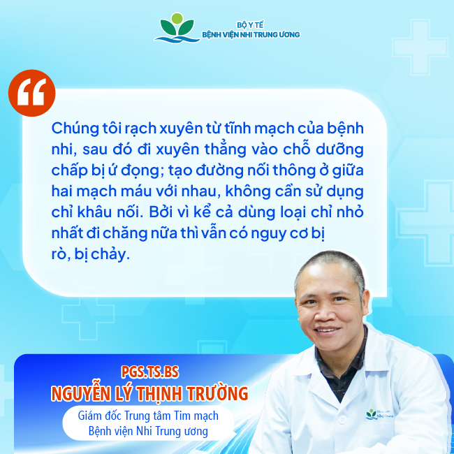 Từ thực tế đó, ekip phẫu thuật đã đưa ra quyết định rất sáng tạo, chưa từng thực hiện trước đó: Thiết lập miệng nối giữa hệ bạch huyết và tĩnh mạch mà không sử dụng chỉ khâu. Thay vì khâu trực tiếp vào thành mạch, các bác sĩ đã cô lập hoàn toàn chạc ba của tĩnh mạch chủ trên – tĩnh mạch vô danh, đồng thời rạch xuyên từ lòng tĩnh mạch đi trực tiếp vào chỗ dưỡng chấp bị ứ đọng, tạo ra một khoang dẫn chung không có chỉ khâu để dịch dưỡng chấp có thể tự chảy vào hệ tĩnh mạch theo chênh lệch áp lực sinh lý. Kỹ thuật này (vốn được sử dụng trong phẫu thuật tim bẩm sinh) đã giúp giảm thiểu tối đa tổn thương thành mạch, đồng thời đảm bảo khơi thông hoàn toàn đường dẫn hiệu quả và bền vững, gần như loại trừ khả năng tắc nghẽn tại miệng nối.