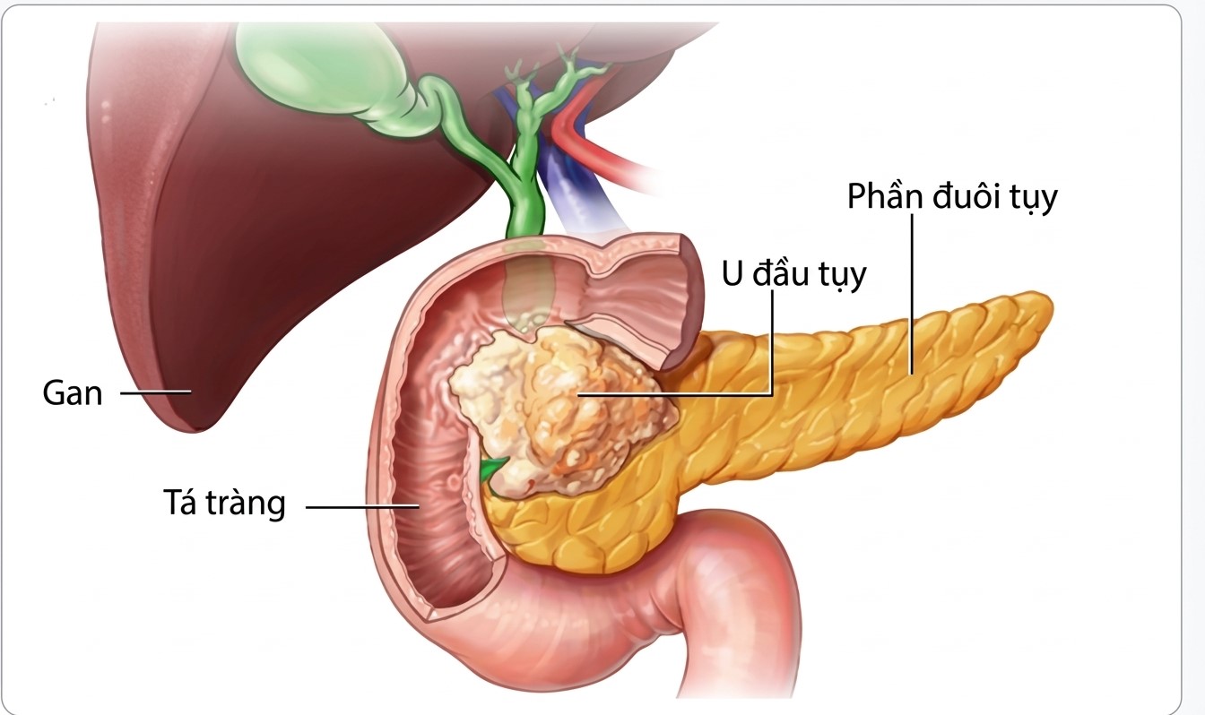 Hình ảnh minh họa khối u xâm lấn vùng đầu tụy (nguồn: internet)