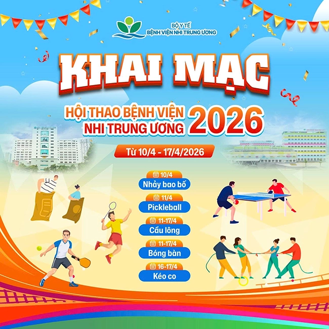 Mang theo thông điệp “Khỏe để xây dựng Tổ quốc, khỏe để bảo vệ sức khỏe cộng đồng”, đồng thời chào mừng các ngày lễ lớn của Đất nước và khai trương cơ sở 2 của Bệnh viện, Hội thao Bệnh viện Nhi Trung ương năm 2026 đã chính thức khởi tranh, mở ra chuỗi hoạt động thể thao sôi nổi từ ngày 10 – 17/4/2026.