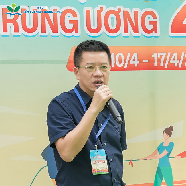 PGS.TS. Phạm Duy Hiền – Phó Giám đốc Bệnh viện nhấn mạnh ý nghĩa của hội thao, đồng thời khích lệ các vận động viên thi đấu hết mình, đề cao sự công tâm của trọng tài và phát huy tinh thần đoàn kết tập thể, hướng tới xây dựng Bệnh viện ngày càng phát triển vững mạnh