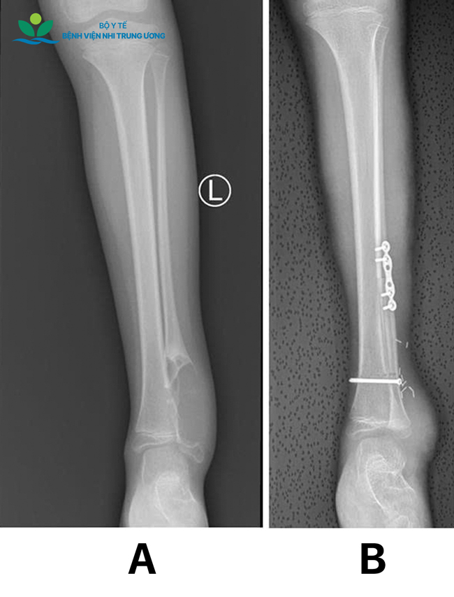 Bé N. (8 tuổi, Hà Nội) được phát hiện có bất thường ở chân trái từ năm 4 tuổi. Ban đầu, gia đình thấy con sưng vùng mắt cá chân. Nghĩ con ngã khi vui chơi, người nhà chỉ xoa dầu và theo dõi tại nhà. Tuy nhiên, tình trạng không thuyên giảm, bé được đưa đi khám và được chẩn đoán mắc u đầu dưới xương mác chân trái. Thời điểm đó, trẻ đã được phẫu thuật lấy khối u, làm giải phẫu bệnh. Sau mổ, sức khỏe bé ổn định, sinh hoạt và vui chơi bình thường. Tuy nhiên, việc tái khám định kỳ bị gián đoạn. Đến cuối tháng 1/2026, chân trái của trẻ bất ngờ sưng to, đau nhiều và đi lại khó khăn. Gia đình lập tức đưa trẻ đến Bệnh viện Nhi Trung ương để kiểm tra.